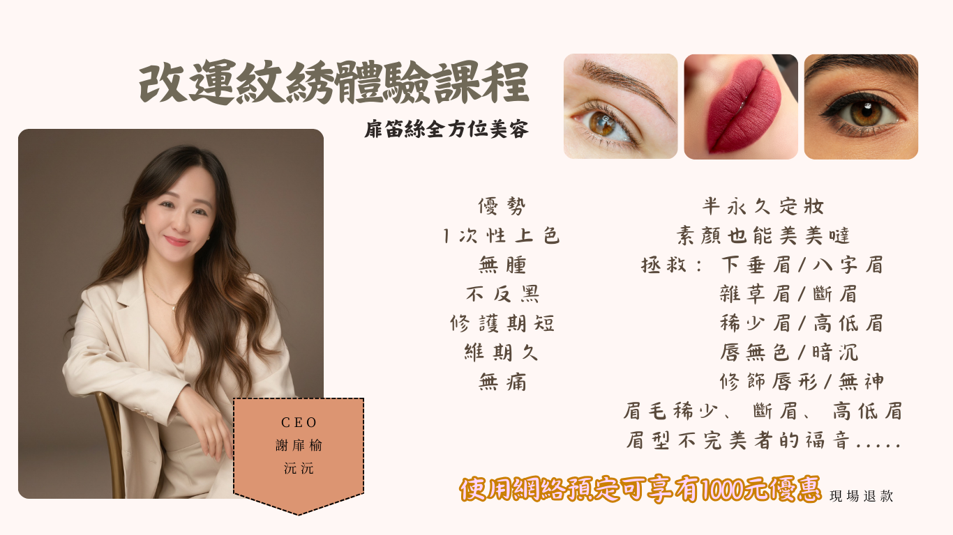 • 紋繡技術:霧眉、飄眉、繡眉