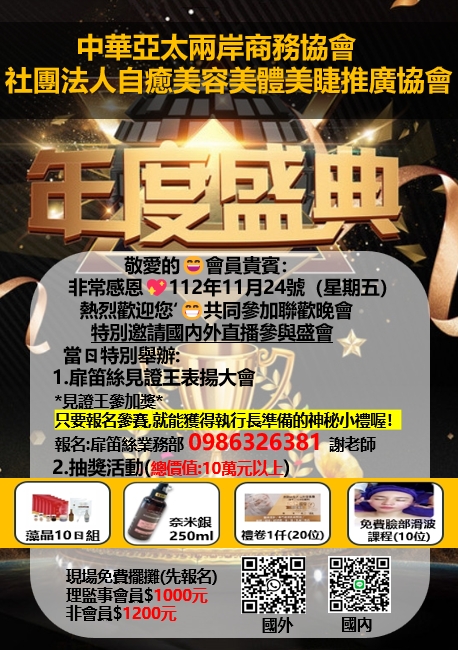 中華亞太兩岸商務協會 社團法人自癒美容美體美睫協會 年度盛典2023.08.24 中華亞太兩岸商務協會 |
